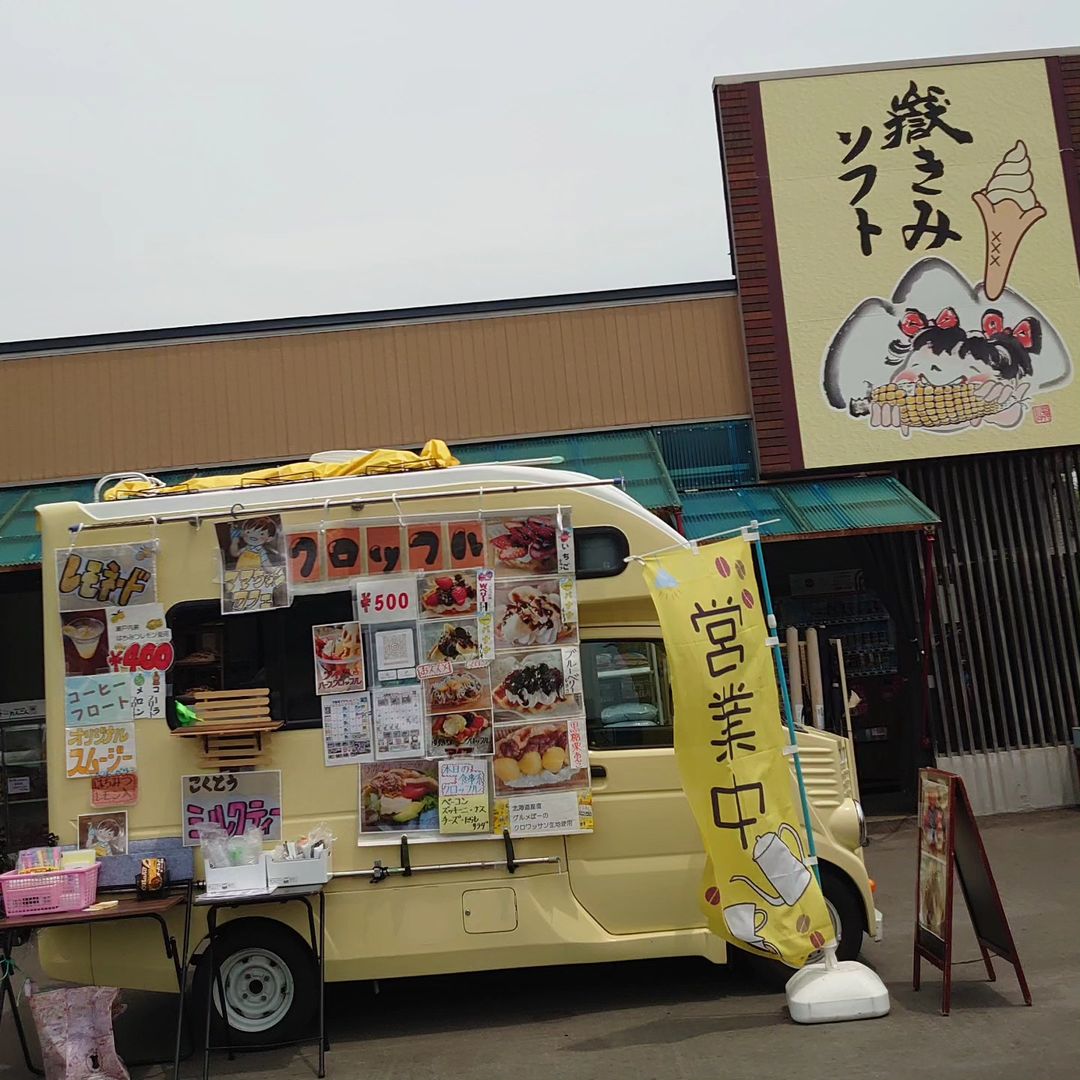 青空の下、弘前市内を駆け巡り、地元の新鮮な食材を使用した独自のスイーツをお届けします。