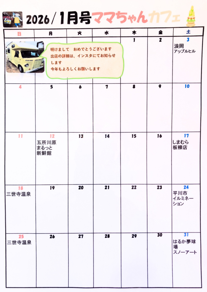 それでは、1月の出店スケジュールです📅